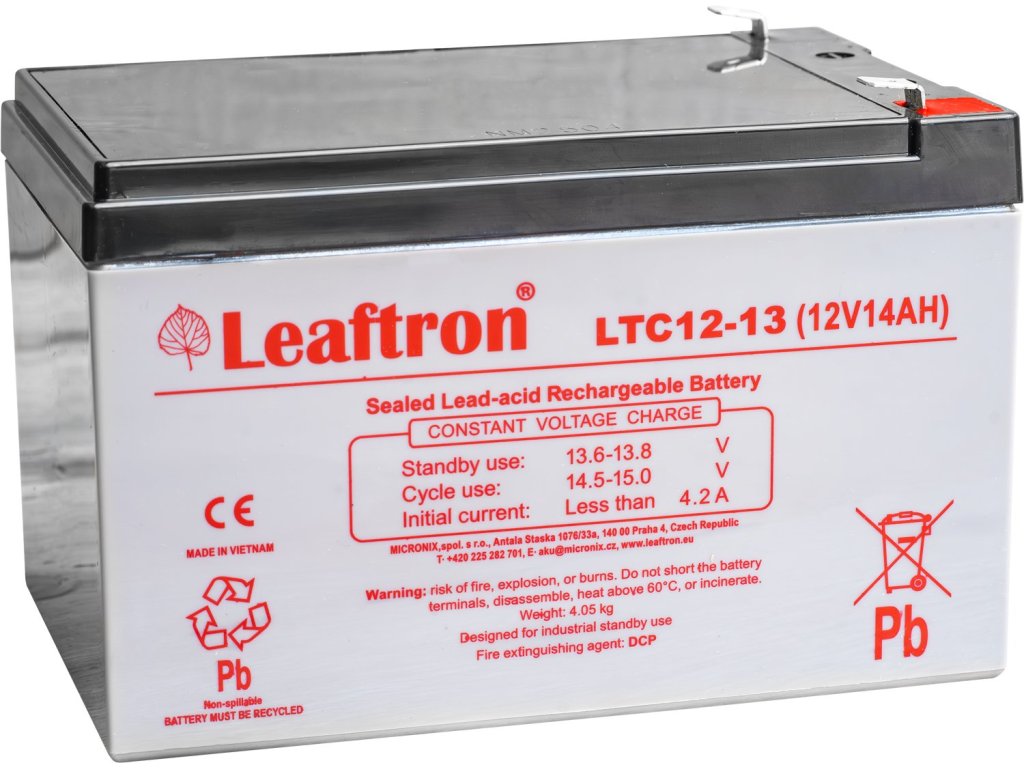 LTC12-13 12V 13Ah - záložní, bezúdržbový, VRLA, uzavřený, akumulátor. Technologie AGM. Určený nejen pro záložní zdroje UPS, EZS, EPS atd. Výhradní dovozce akumulátorů Leaftron je firma MICRONIX, spol. s r.o.