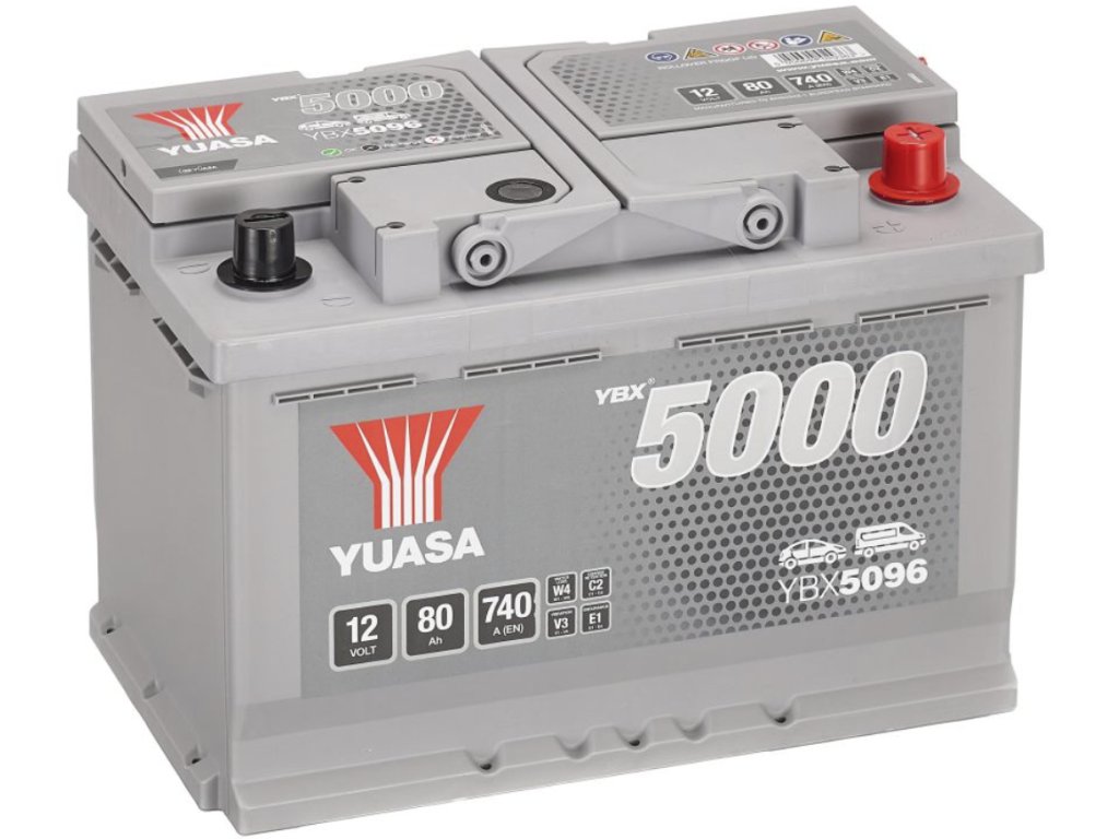 YBX5096 12V-80Ah 760A(EN) bezúdržbová autobaterie YUASA. Výhradní dovozce firma MICRONIX, spol. s r.o. Bezúdržbové akumulátory dodáváme nalité, nabité a zasíláme dopravní službou Toptrans!