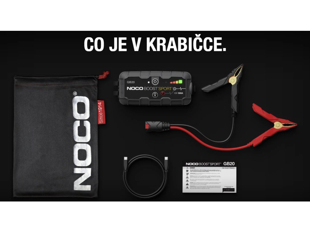 NOCO GB20 přenosné startovací zařízení. Výrobce NOCO. Dovozce firma MICRONIX,spol. s r.o. GB20 slouží pro nouzové startování malých osobních automobilů, motocyklů, čtyřkolek, sekaček atd. reálným proudem až 500A.