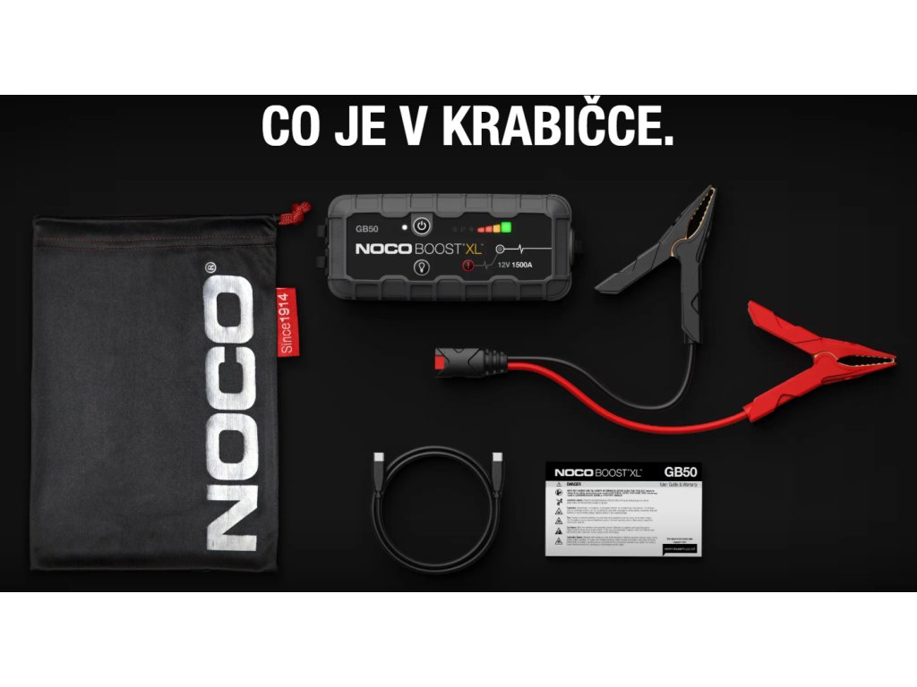 NOCO GB50 12V 1500A přenosné startovací zařízení. GB50 slouží pro nouzové startování osobních automobilů i s naftovým motorem, malých dodávek, lodí, motocyklů, čtyřkolek, sekaček atd. reálným proudem až 1500A. Výrobce NOCO. Dovozce MICRONIX,spol. s r.o.