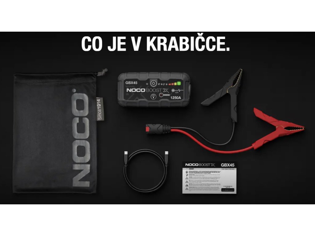 NOCO GBX45 12V 1250A přenosné startovací zařízení. GBX45 slouží pro nouzové startování osobních automobilů i s naftovým motorem, kamionů, dodávek, lodí, motocyklů, čtyřkolek, sekaček atd. proudem až 1250A. Výrobce NOCO. Dovozce MICRONIX,spol. s r.o.