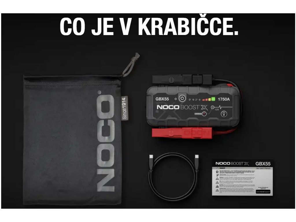 NOCO GBX55 12V 1750A přenosné startovací zařízení. GBX55 slouží pro nouzové startování osobních automobilů i s naftovým motorem, kamionů, dodávek, lodí, motocyklů, čtyřkolek, sekaček atd. proudem až 1750A. Výrobce NOCO. Dovozce MICRONIX,spol. s r.o.