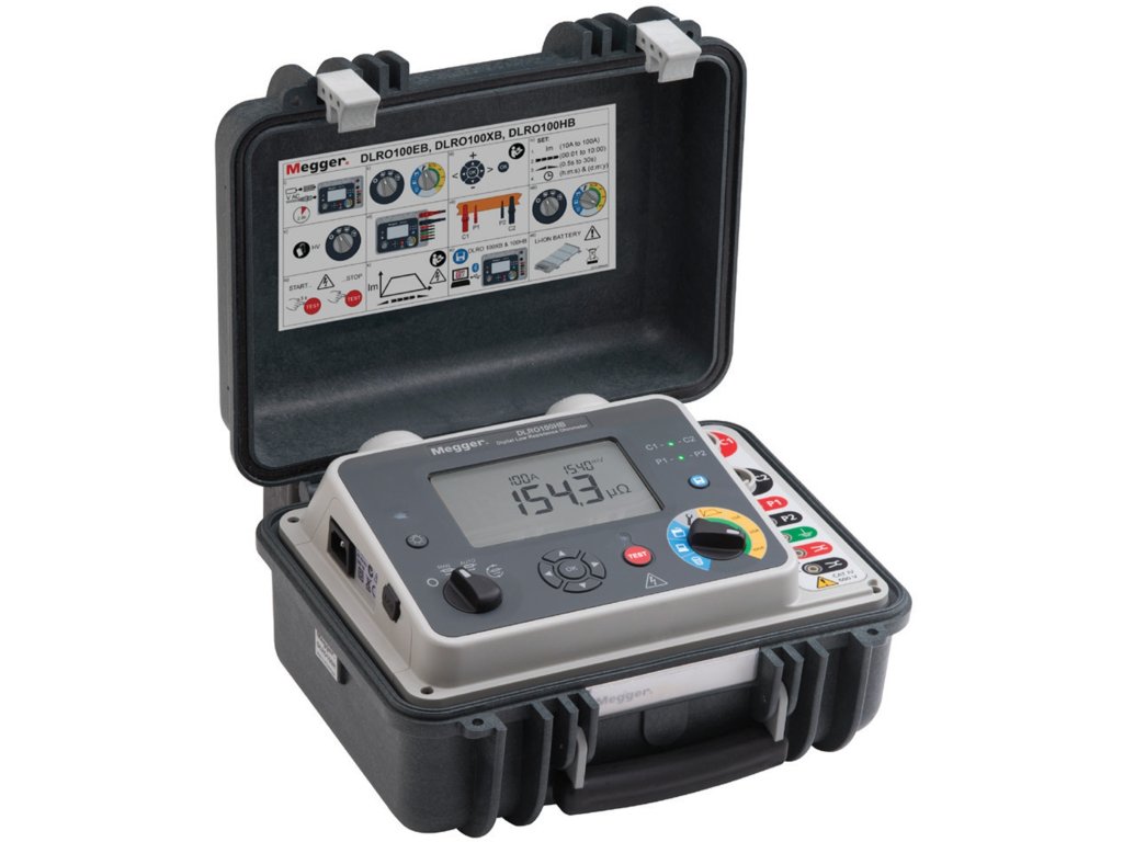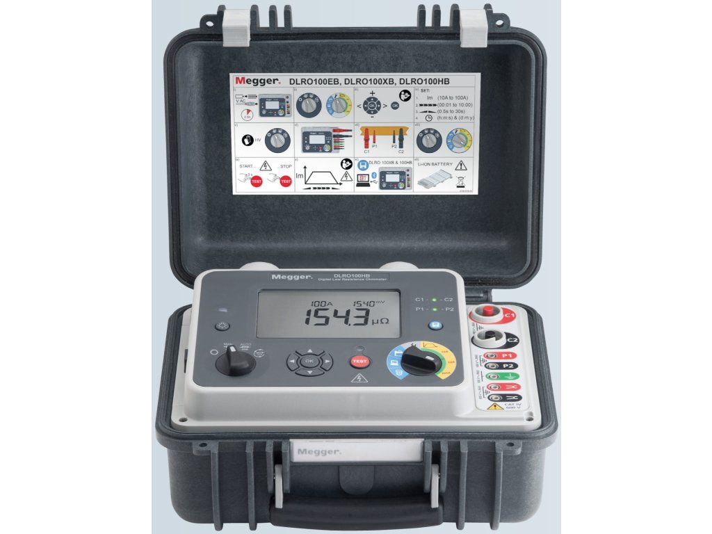 DLRO100EB je digitální mikroohmmetr od firmy Megger, s možností měření proudem až 100 A z vestavěné baterie.
