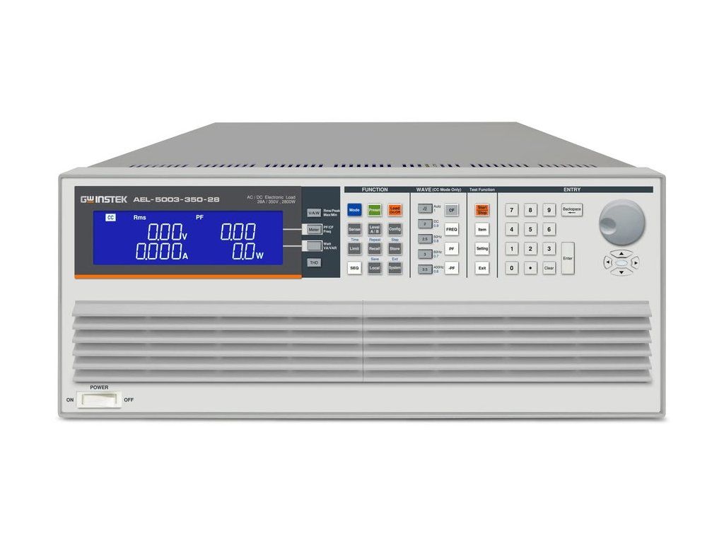 GW Instek AEL-5003-350-28 je AC/DC elektronická zátěž s výkonem až 2800 W, pro napětí max. 350 VRMS (500 VDC) a proud max. 28 A.