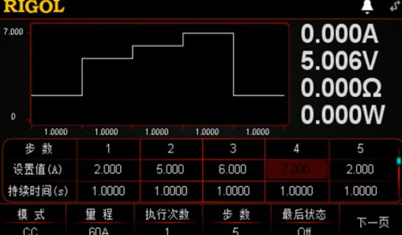 Pomocí List funkce lze definovat až 512 kroků s přesně nastavenými hodnotami, délkami trvání a náběhy. To umožňuje vytvářet komplexní testovací sekvence bez nutnosti externího řízení.