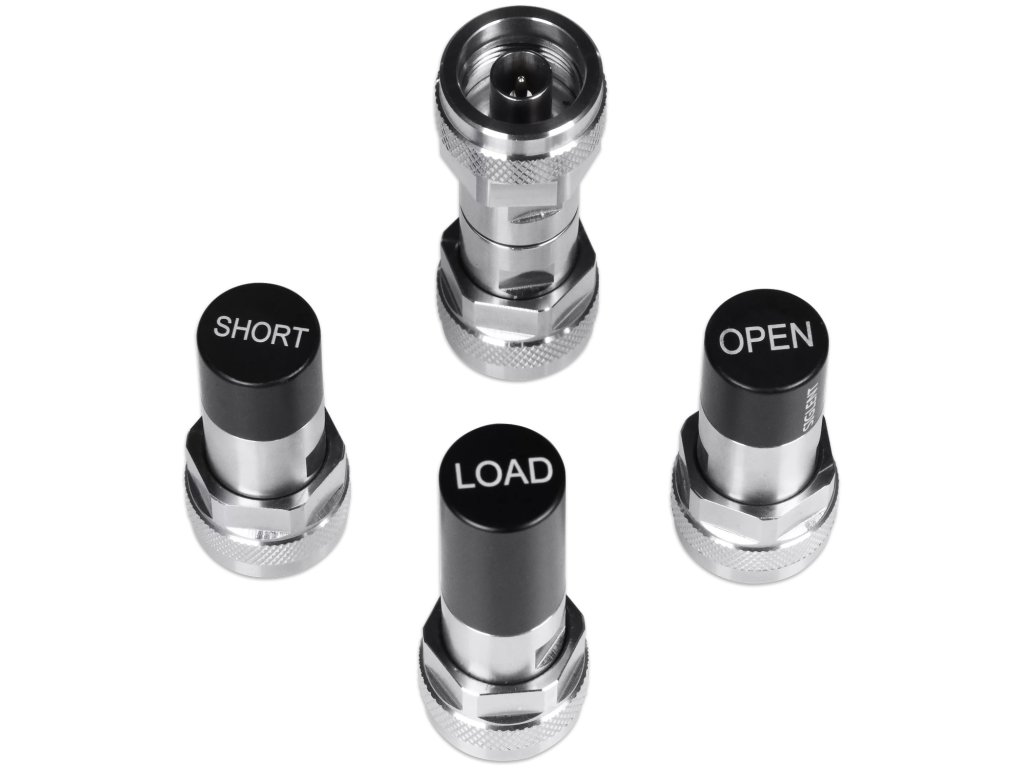 Integrované mechanické kalibrační standardy Siglent F504MS 50Ω pro koaxiální kabely typu N, ekonomické, zahrnují pevné zakončení, rozpojené obvody, zkraty a průchozí adaptéry, specifikované od DC do 9 GHz.