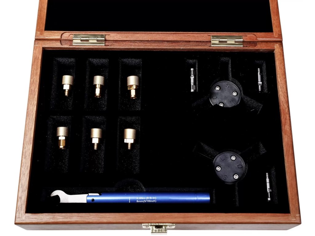 - 9 kalibračních prvků: typ 3,5 mm otevřený (M,F), zkrat (M,F), přizpůsobení/zátěž (M,F 50Ω), průchozí (M-M, M-F, F-F), DC ~ 9 GHz