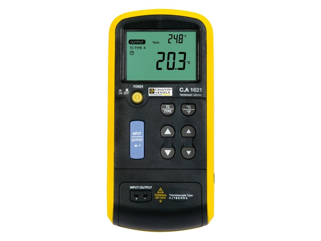 C.A 1621 je přenosný kalibrátor určený pro práci s termočlánky a signály v milivoltech. Umožňuje měření i simulaci běžně používaných typů termočlánků a je vhodný pro rychlou kontrolu teplotních měření přímo v provozu nebo při servisních zásazích.