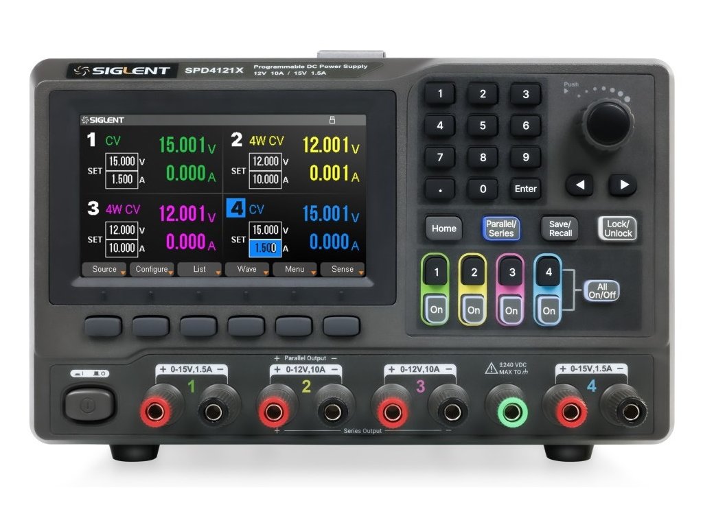 SIGLENT SPD4121X je 285 W programovatelný lineární stejnosměrný napájecí zdroj, nabízející 4 nezávislé kanály.