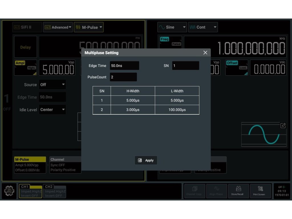 Rigol DG5000 Pro-BND je volitelný balíček pro generátory funkcí Rigol DG5000 pro, který obsahuje několik možností, jako je IQ modulace, multipulzní výstup, multi-tone, vzorek, možnosti sekvencí a také rozšíření délky programovatelného průběhu na 128 Mpts/CH. Kompletní sada obsahuje:
