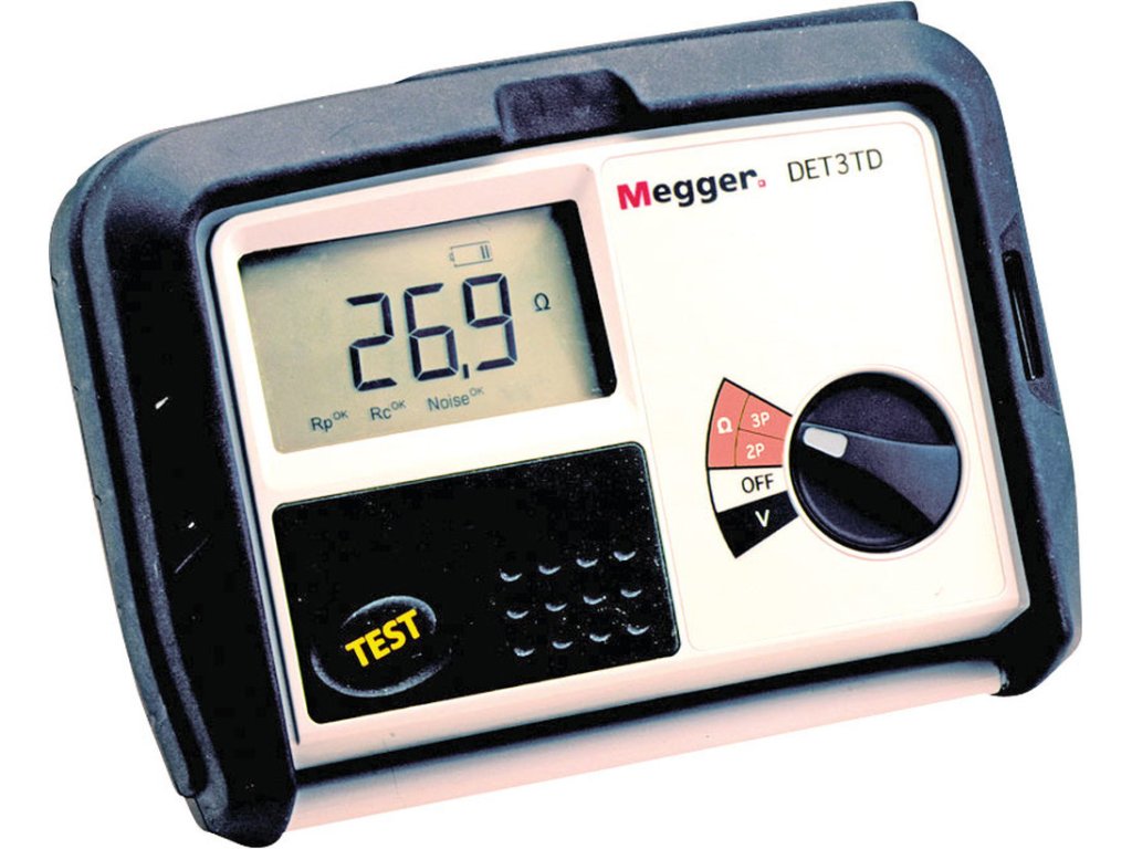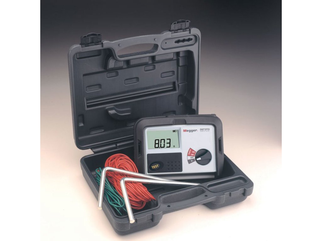 Digitální měřič zemního odporu DET3TD: 2-vodičové a 3-vodičové měření; rozsah měření 0,01 až 2000 Ω (přesnost 2% ±3 dig.); kontrola připojení tyčí P a C; rozsah měření napětí 0 až 100 V AC; volitelné výstupní napětí 25 V / 50 V; CAT IV 100 V; krytí IP54; možnost měření v silně zarušených prostředích - až do 40 V PP; testovací frekvence 128 Hz; testovací proud 450 μA nebo 4,5 mA. Měřicí vodiče, kolíky a kufřík jsou součástí dodávky. Napájení pomocí 8 ks baterií AA; rozměry 203 x 148 x 78 mm; hmotnost 1 kg.