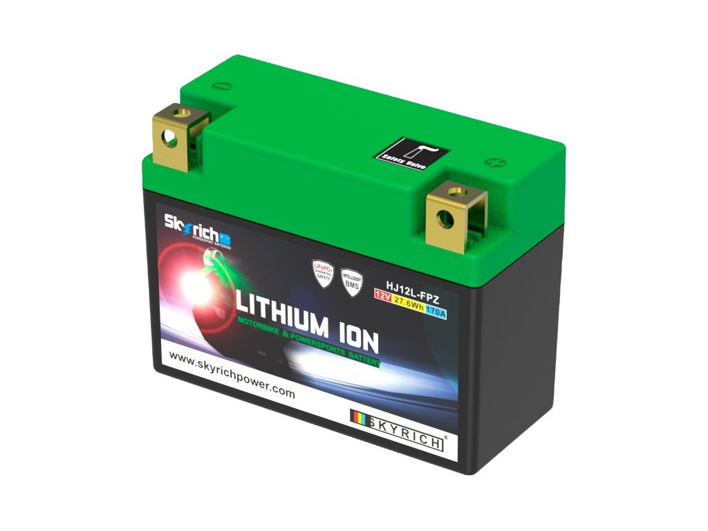 Lithiové akumulátory Skyrich LiFePO4 jsou známé svými malými rozměry. Dodávají se s distančními podložkami pro uzpůsobení jakémukoli bateriovému prostoru v motocyklu. Při správném používání nehrozí riziko výbuchu nebo požáru, jako je tomu u jiných lithiových akumulátorů. Akumulátor HJ12L-FPZ je šetrný k životnímu prostředí, protože neobsahuje jedovaté kovy jako olovo, rtuť či kobalt. Neobsahuje ani kyselinu sírovou, jako je tomu u olověných akumulátorů, a proto je použitelný v jakékoli poloze, včetně "vzhůru nohama". Akumulátor se dodává naplněný, přednabitý, připravený k okamžitému provozu.