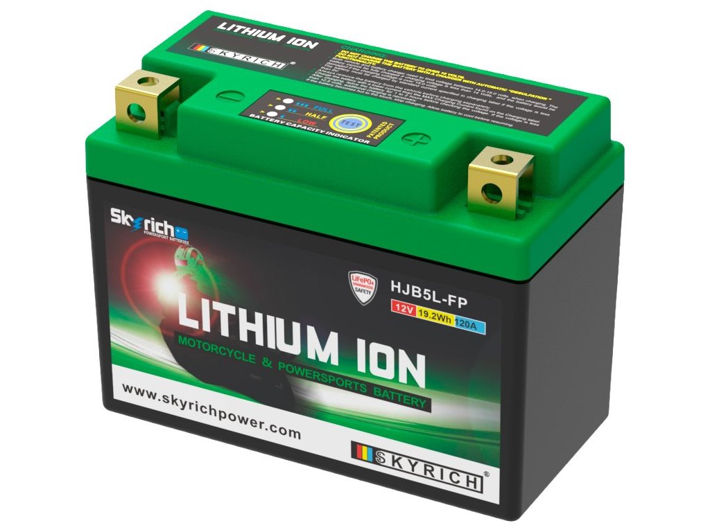 Lithiové akumulátory Skyrich LiFePO4 jsou známé svými malými rozměry. Dodávají se s distančními podložkami pro uzpůsobení jakémukoli bateriovému prostoru v motocyklu. Při správném používání nehrozí riziko výbuchu nebo požáru, jako je tomu u jiných lithiových akumulátorů. Akumulátor HJB5L-FP je šetrný k životnímu prostředí, protože neobsahuje jedovaté kovy jako olovo, rtuť či kobalt. Neobsahuje ani kyselinu sírovou, jako je tomu u olověných akumulátorů, a proto je použitelný v jakékoli poloze, včetně "vzhůru nohama". Akumulátor se dodává naplněný, přednabitý, připravený k okamžitému provozu.