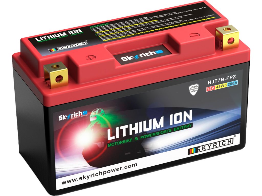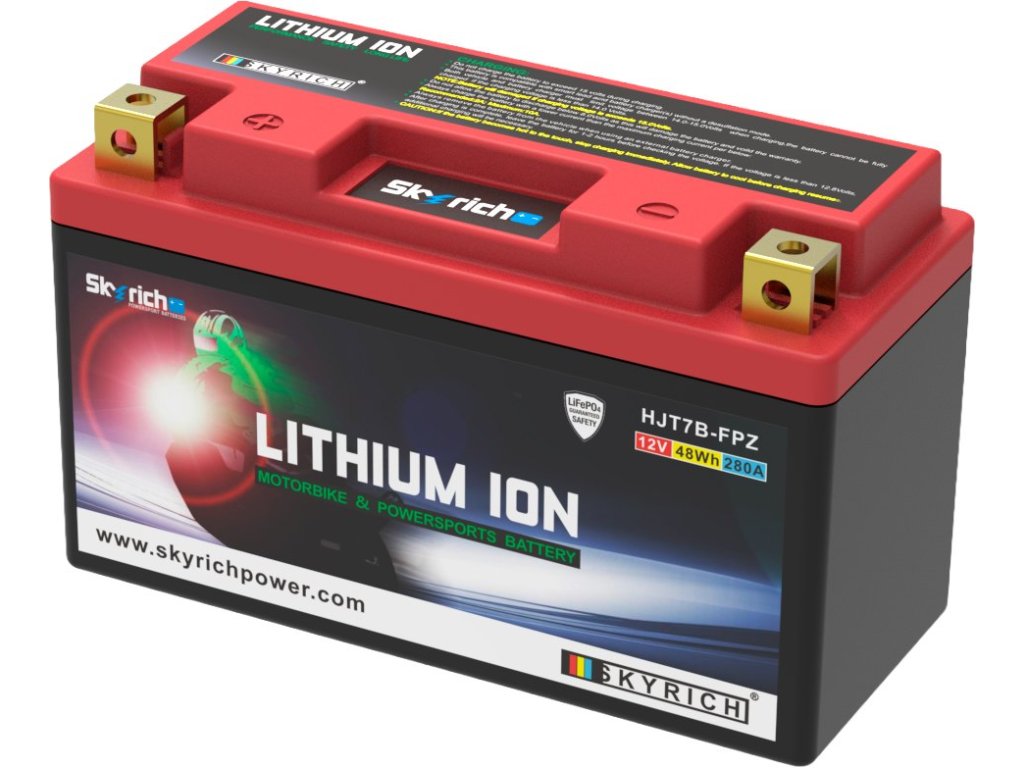Lithiové akumulátory Skyrich LiFePO4 jsou známé svými malými rozměry. Dodávají se s distančními podložkami pro uzpůsobení jakémukoli bateriovému prostoru v motocyklu. Při správném používání nehrozí riziko výbuchu nebo požáru, jako je tomu u jiných lithiových akumulátorů. Akumulátor HJT7B-FPZ je šetrný k životnímu prostředí, protože neobsahuje jedovaté kovy jako olovo, rtuť či kobalt. Neobsahuje ani kyselinu sírovou, jako je tomu u olověných akumulátorů, a proto je použitelný v jakékoli poloze, včetně "vzhůru nohama". Akumulátor se dodává naplněný, přednabitý, připravený k okamžitému provozu.