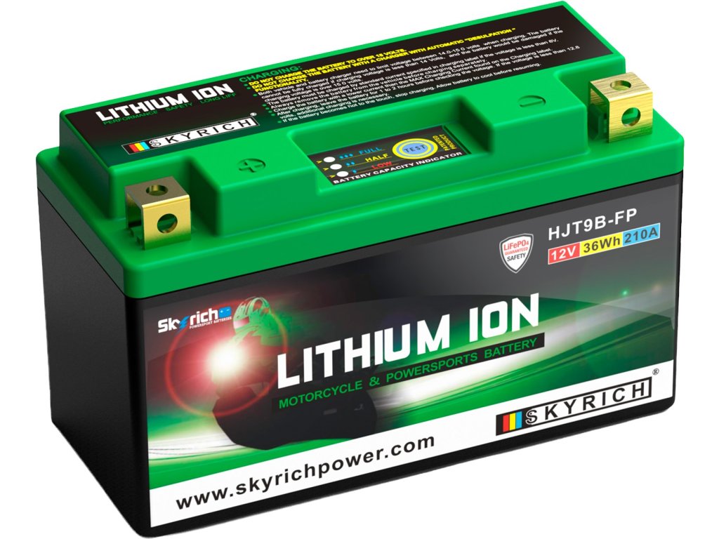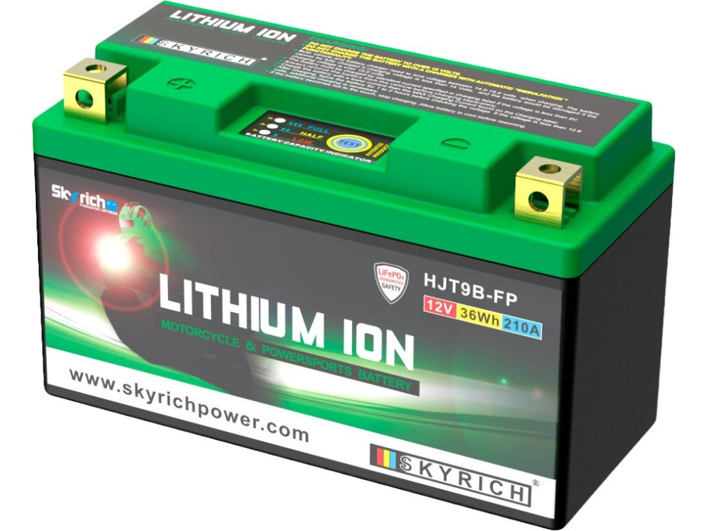 Lithiové akumulátory Skyrich LiFePO4 jsou známé svými malými rozměry. Dodávají se s distančními podložkami pro uzpůsobení jakémukoli bateriovému prostoru v motocyklu. Při správném používání nehrozí riziko výbuchu nebo požáru, jako je tomu u jiných lithiových akumulátorů. Akumulátor HJT9B-FP je šetrný k životnímu prostředí, protože neobsahuje jedovaté kovy jako olovo, rtuť či kobalt. Neobsahuje ani kyselinu sírovou, jako je tomu u olověných akumulátorů, a proto je použitelný v jakékoli poloze, včetně "vzhůru nohama". Akumulátor se dodává naplněný, přednabitý, připravený k okamžitému provozu.