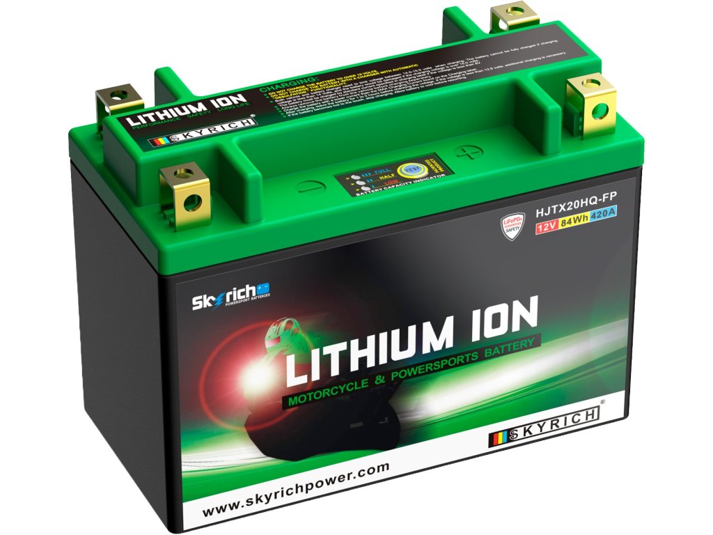 Lithiové akumulátory Skyrich LiFePO4 jsou známé svými malými rozměry. Dodávají se s distančními podložkami pro uzpůsobení jakémukoli bateriovému prostoru v motocyklu. Při správném používání nehrozí riziko výbuchu nebo požáru, jako je tomu u jiných lithiových akumulátorů. Akumulátor HJTX20HQ-FP je šetrný k životnímu prostředí, protože neobsahuje jedovaté kovy jako olovo, rtuť či kobalt. Neobsahuje ani kyselinu sírovou, jako je tomu u olověných akumulátorů, a proto je použitelný v jakékoli poloze, včetně "vzhůru nohama". Akumulátor se dodává naplněný, přednabitý, připravený k okamžitému provozu.