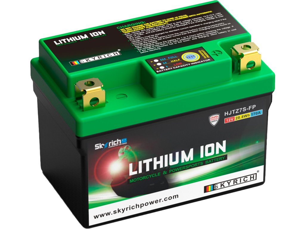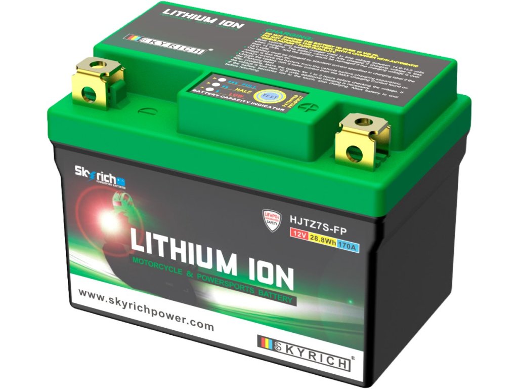 Lithiové akumulátory Skyrich LiFePO4 jsou známé svými malými rozměry. Dodávají se s distančními podložkami pro uzpůsobení jakémukoli bateriovému prostoru v motocyklu. Při správném používání nehrozí riziko výbuchu nebo požáru, jako je tomu u jiných lithiových akumulátorů. Akumulátor HJTZ7S-FP je šetrný k životnímu prostředí, protože neobsahuje jedovaté kovy jako olovo, rtuť či kobalt. Neobsahuje ani kyselinu sírovou, jako je tomu u olověných akumulátorů, a proto je použitelný v jakékoli poloze, včetně "vzhůru nohama". Akumulátor se dodává naplněný, přednabitý, připravený k okamžitému provozu.