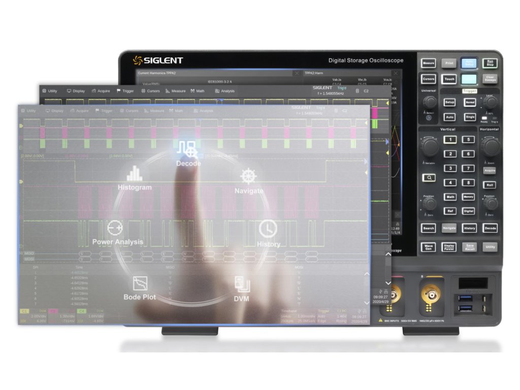 - Bohaté funkce pro analýzu dat, jako je vyhledávání, navigace, digitální voltmetr, čítač, histogram tvaru vlny, Bodeho graf, analýza výkonu a test dvojitých pulzů