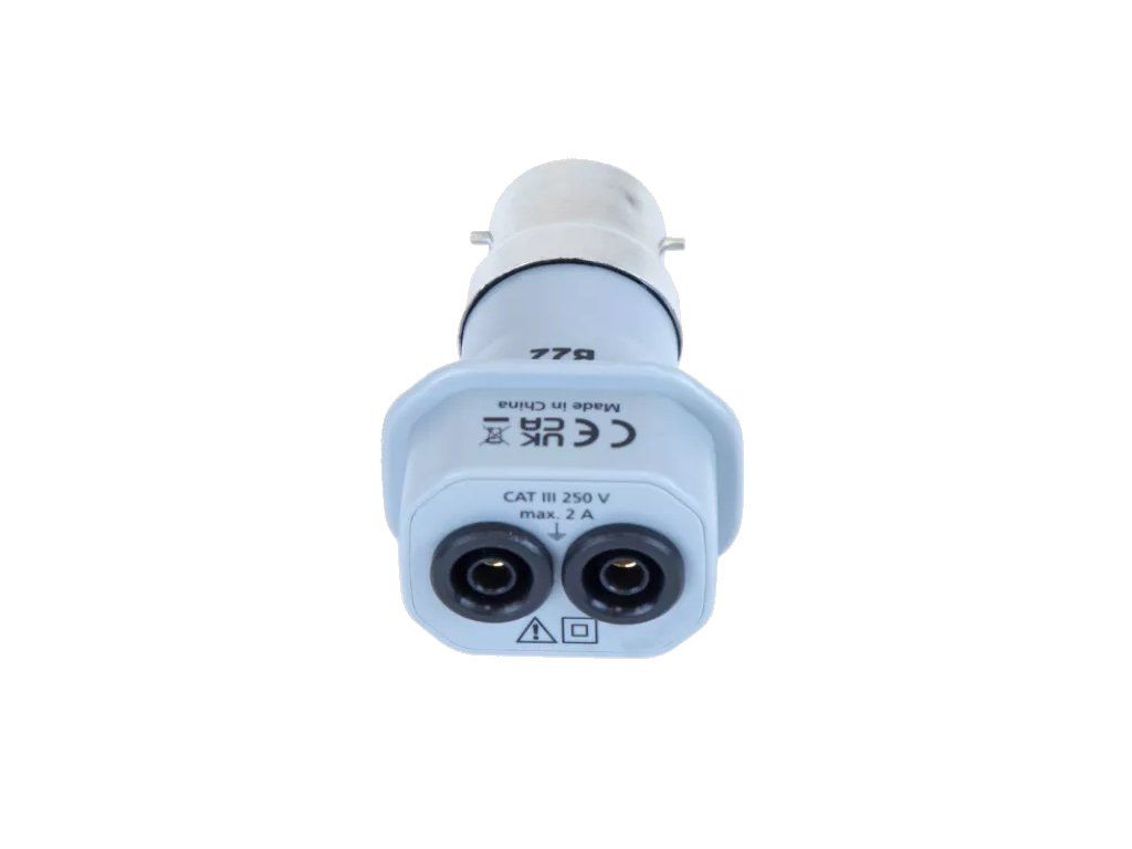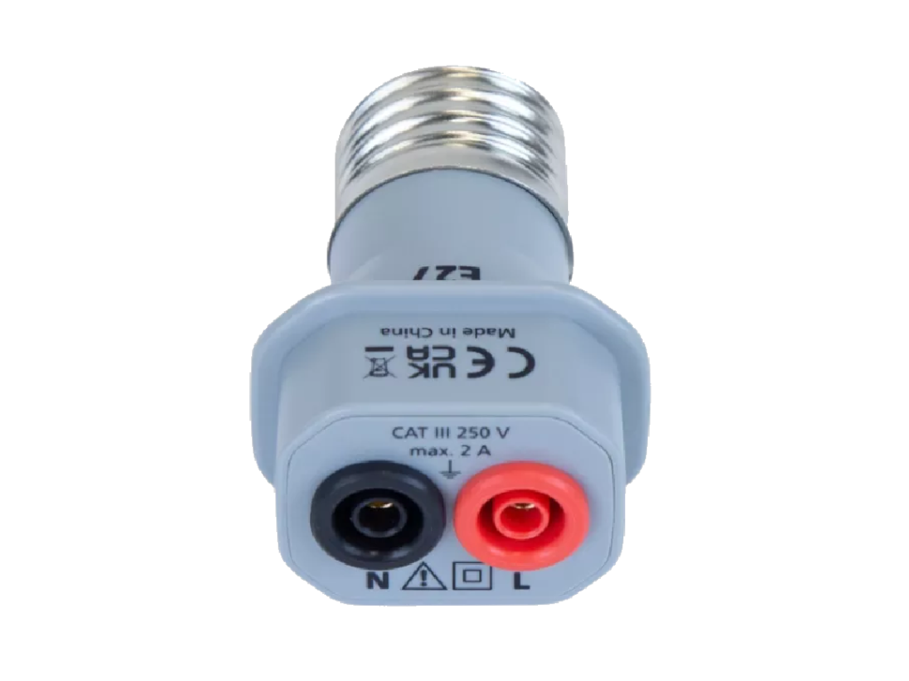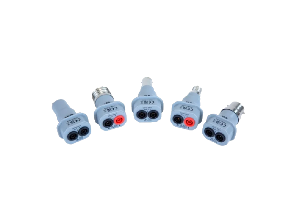 Profesionální sada 5 adaptérů (E27, E14, B22, B14, GU10) pro bezpečné testování obvodů přímo přes patice žárovek. Umožňuje měření bez demontáže svítidel pomocí standardních 4mm zdířek. Ideální pro revizní přístroje (např. MFT-X1). Splňuje normu IEC61010. Dodáváno s kabely v ochranném pouzdře.
