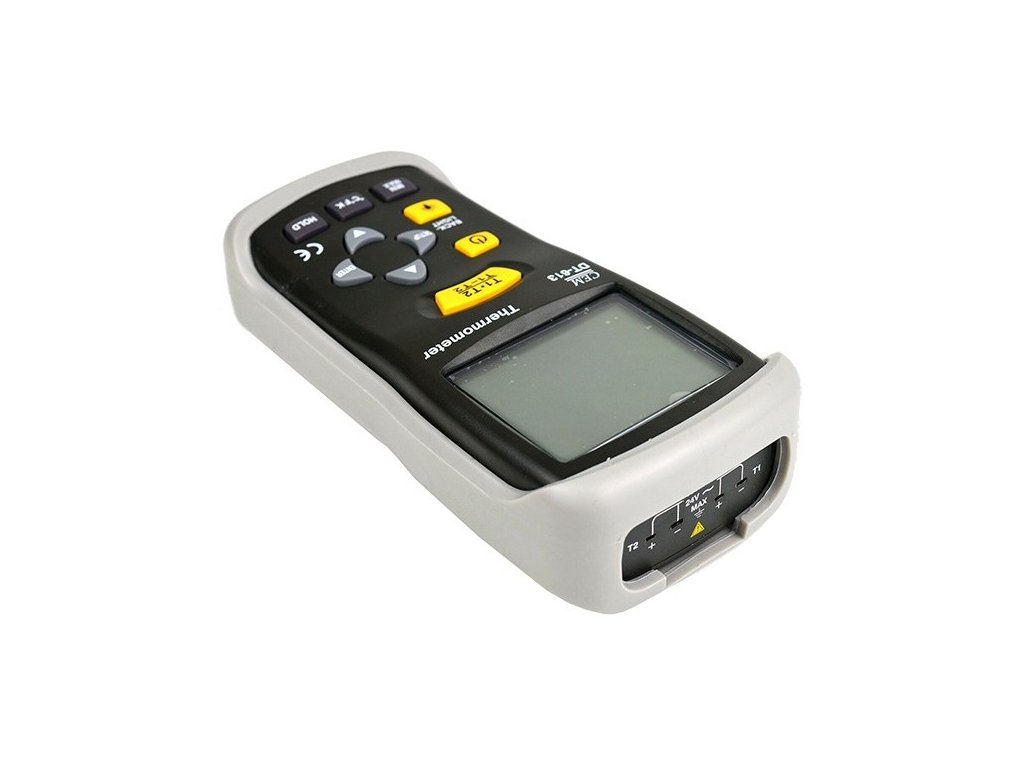 Digitální teploměr s dvěma vstupy, určený pro použití externích termočlánků typu K (teplotních sond). Přístroj má podsvícený displej a je chráněný robustním pouzdrem. Poskytuje funkci elektronického posunu, která umožňuje kompenzaci chyb termočlánků pro maximalizaci celkové přesnosti. Možnost zobrazení změřené hodnoty v ºC, ºF nebo Kelvinech (K).