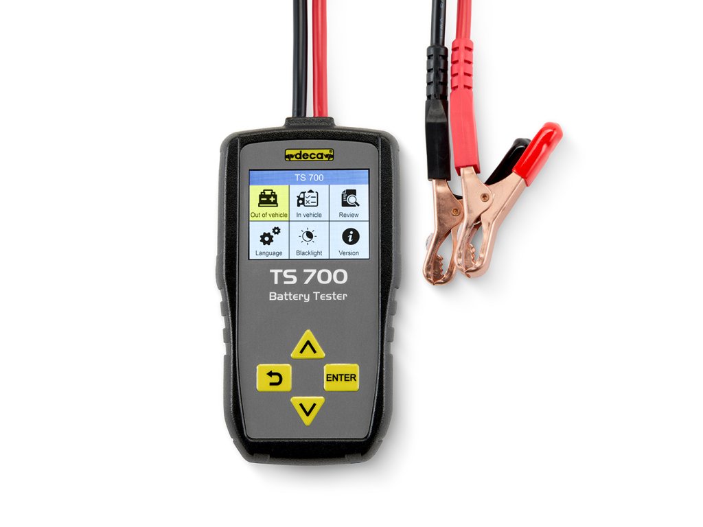 Tester akumulátorů Deca TS700 je kompaktní, praktické a snadno použitelné zařízení určené k testování akumulátorů typu WET, AGM, GEL, EFB, LiFePO4 a startovacích a nabíjecích systémů vozidel.