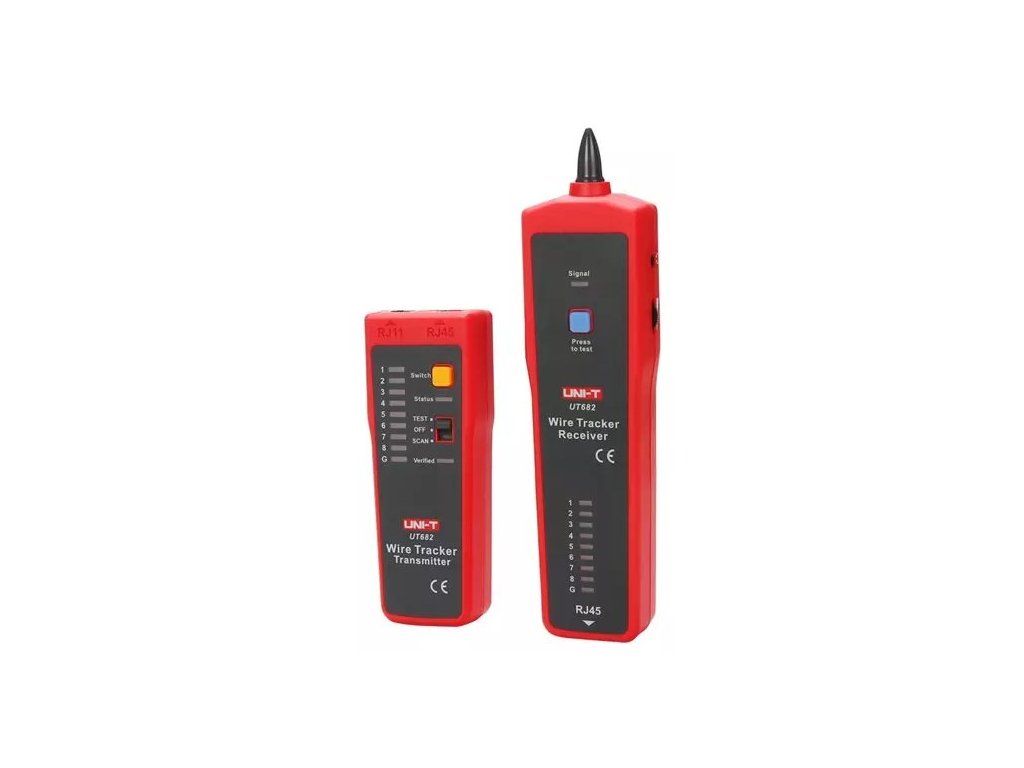 UNI-T UT682 Vysílač, UNI-T UT682 Přijímač, RJ11 kabel, RJ45 kabel, kabel s krokosvorkami, pouzdro, návod