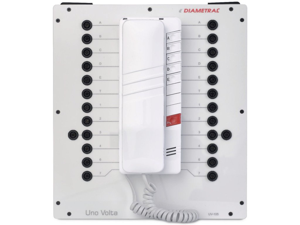 Výukový systém Uno Volta UV-105 je určen k seznámení s problematikou klasického domácího vrátného. Panel obsahuje vnitřní mikrotelefon s reproduktorem a mikrofonem a dále tlačítko pro ovládání elektrického domovního zámku. Tento panel neobsahuje napájecí zdroj, je napájen z panelu UV-104. Pro názornější demonstrace funkce ja lepší použít vždy minimálně dva panely UV-105 s jedním panelem UV-104. Studenti si tak mohou prakticky ověřit zapojení a funkci domácího mikrotelefonu při komunikaci s venkovní jednotkou a dálkové otevírání domovních dveří z více míst.
