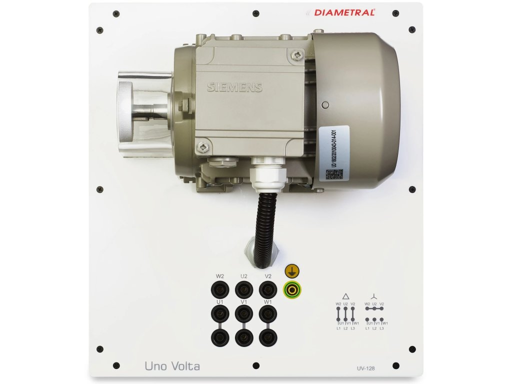 Výukový systém Uno Volta UV-128 představuje třífázový elektromotor, umožňující provoz v režimu Y/D (hvězda/trojúhelník). Hřídel motoru je proti náhodnému kontaktu obsluhy s rotující hřídelí vybavena krytem, který se při roztočení motoru červeně rozsvítí. Obsluha je tak varována před náhodným kontaktem s rotující hřídelí.