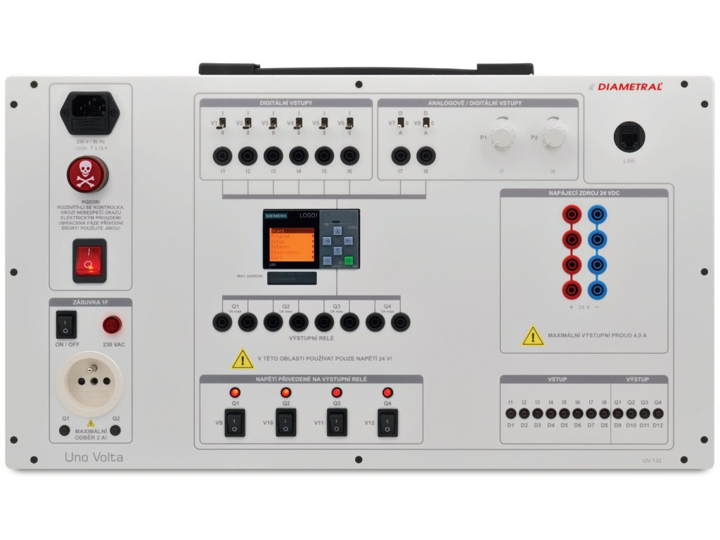 Výukový systém Uno Volta UV-132 s PLC modulem Siemens LOGO slouží k výuce zapojení automatizačních úloh. Panel umožňuje ověřit navrhovaná zapojení a slouží i pro výuku programování logického programovatelného modulu Siemens LOGO! Výukový panel je navržen tak, aby bylo možno ověřit základní návrhy bez potřeby dalších externích zařízení, umožňuje však tyto externí zařízení k modulu připojit. Programovatelný modul lze programovat přímo na displeji modulu, nebo prostřednictvím originálního software LOGO!Soft Comfort.