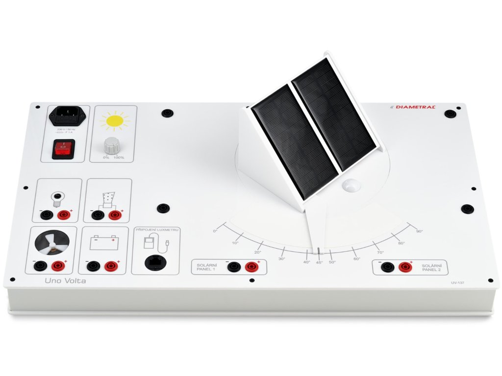 Panel Uno Volta UV-137 umožňuje měnit intenzitu světla, směr, dopadu paprsků na panely a simulaci vlivu denní doby na účinnost panelů. Studenti zároveň mohou měřit skutečné množství dopadajícího světla na panely a sledovat vliv intenzity slunečního záření při jeho využití k pohonu různých zařízení. K tomu slouží integrovaný elektromotorek, sirénka, nebo LED dioda. Vyrobenou energii lze též „uschovat” do úložiště, které je součástí panelu UnoVolta UV-137.