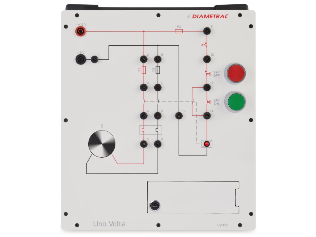 UnoVolta UV112 je výukový panel od firmy Diametral, který umožňuje nasimulovat až 14 na praxi orientovaných chyb pro aplikace se stejnosměrnými motory.