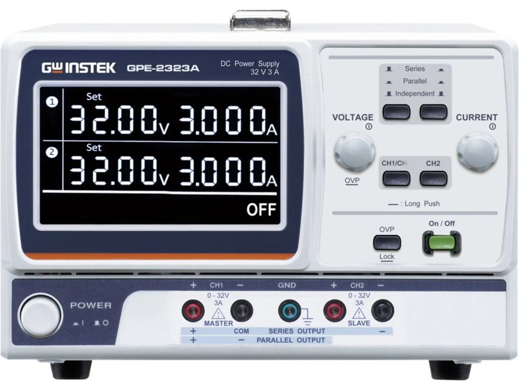 GW Instek GPE-2323A je 2-kanálový stejnosměrný napájecí zdroj, s minimálním zvlněním, možností sériového či paralelního zapojení, s maximálním výkonem 192 W. GPE-2323A je nejnovější verzí řady GPE-X323 a staví na její osvědčené kvalitě a reputaci. Tento vylepšený model vylepšuje přesnost pomocí enkodérového spínače pro přesnější nastavení napětí a proudu. Digitální řídicí systém byl navíc zjednodušen – zredukoval šest otočných knoflíků na pouhé dva, což zvyšuje jednoduchost a snadnost ovládání předního panelu. Díky těmto vylepšením je řada A flexibilnější a přesnější pro vícekanálové aplikace.