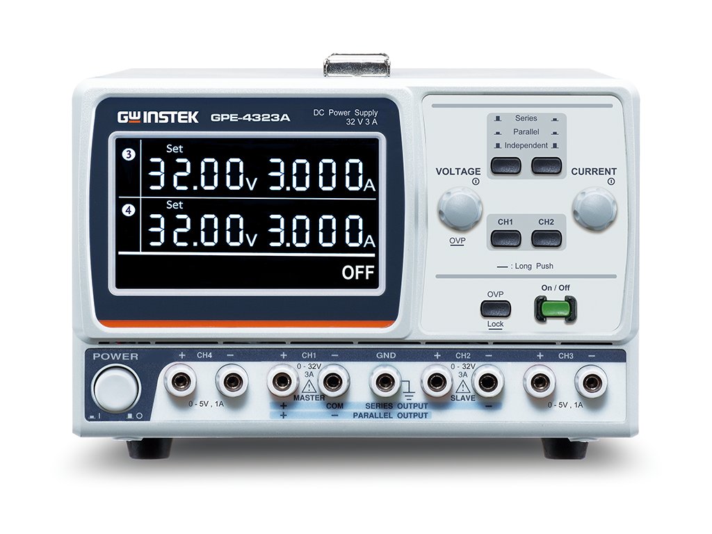 GW Instek GPE-4323A je 4-kanálový stejnosměrný napájecí zdroj, s minimálním zvlněním, možností sériového či paralelního zapojení, s maximálním výkonem 212 W. GPE-4323A je nejnovější verzí řady GPE-X323 a staví na její osvědčené kvalitě a reputaci. Tento vylepšený model vylepšuje přesnost pomocí enkodérového spínače pro přesnější nastavení napětí a proudu. Digitální řídicí systém byl navíc zjednodušen – zredukoval šest otočných knoflíků na pouhé dva, což zvyšuje jednoduchost a snadnost ovládání předního panelu. Díky těmto vylepšením je řada A flexibilnější a přesnější pro vícekanálové aplikace.